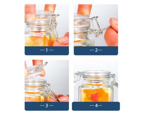 - Four different styles of glass spice jars with glass lids can meet various storage needs.